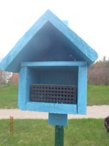 We have now thrown a wider net. These native bee boxes are for later emerging native bees, such as leaf cutter bees. These bees are important pollinators of our food such as tomatoes and squashes. They have been stationed near food growing areas to increase pollination activity and, in the end, increase food production. We all benefit.